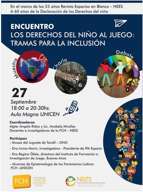 “La historia de los Derechos del Niño y de los derechos del Niño a Jugar. Avatares y desafíos” a cargo de Mgter Angela Ridao y Lic. Anabela Miralles. Se abordo el recorrido histórico que llevaron a cabo organismos internacionales y nacionales para lograr la declaración de los Derechos del Niño y Los Derechos del Niño al Juego.