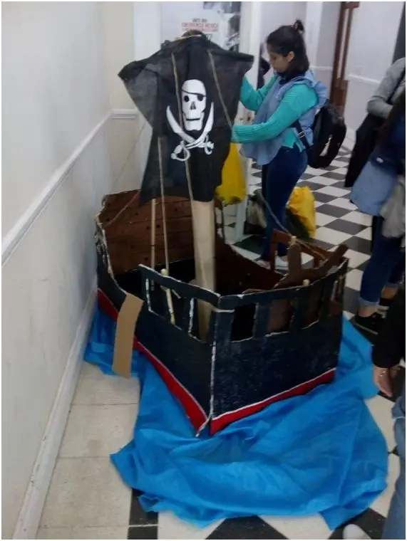 Muestras en el hall de ingreso al Aula Magna.: Viñetas de Francesco Tonucci; “En búsqueda de tesoros. Los juegos tradicionales” de las alumnas de la materia Epistemología de los Fenómenos Lúdicos de la Carrera de Prof. Y Licenciatura de Educación Inicial.