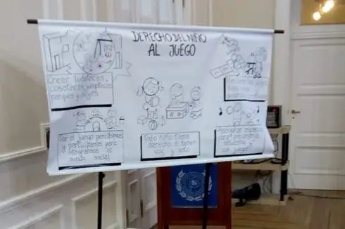 Se pudo escuchar un audio con las voces de los protagonistas esenciales de los DERECHOS: los niños. Se escucharon sus percepciones y apreciaciones sobre el juego y jugar. Culmina la actividad con la proyección de un corto animado sobre los Derechos del Niño a Jugar.